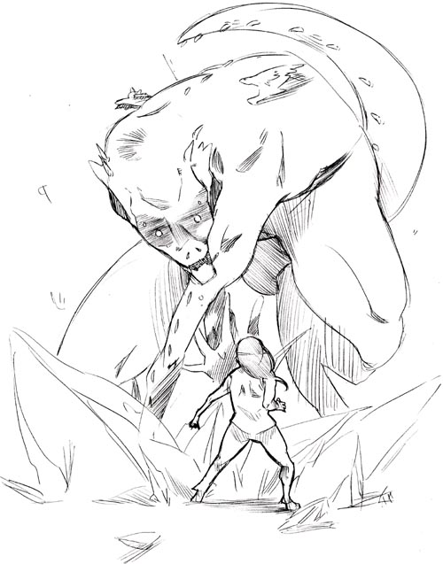 下はこれまたなんとなく対比構図が描きたくなって描いた奴。なんだろねこれ